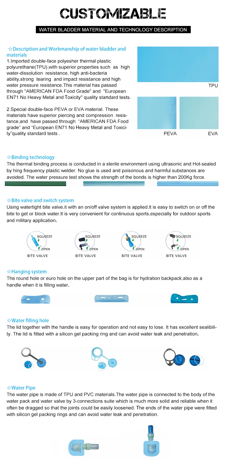 1 Liter 1.5 Liter 2 Liter 2.5 Liter 3 Liter Water Storage Reservoir Bladder with Autolock Outlet