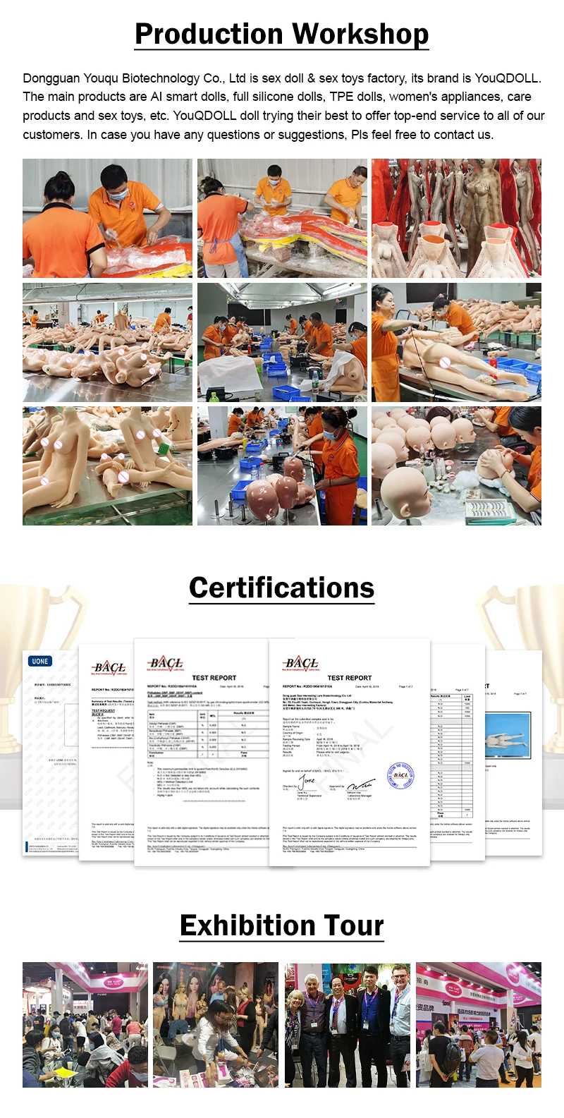 4. why should you buy from us not from other suppliers? Youqudoll is located in Dongguan city, Guangzhou province,China. We specialized in sex toys, TPE sex doll, Silicone sex doll for more than 8 years. The CE certificate, European and Chinese patent certificates can be supplied to our clients