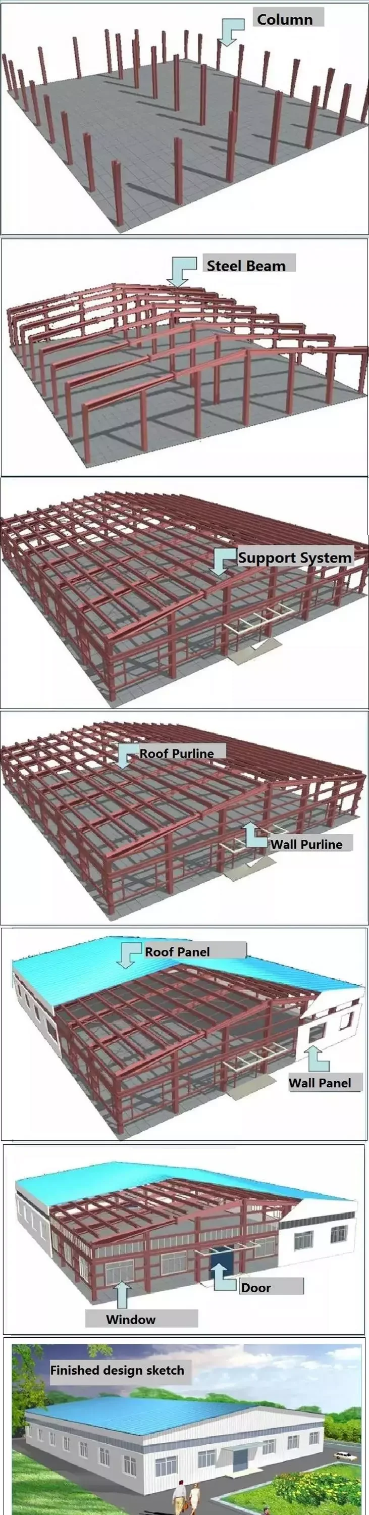 Secondary Steel structure (Q235B) | 3.Bracing 4.H cross-section steel,box cross-section steel,round pipe,round steel,L steel,etc. |