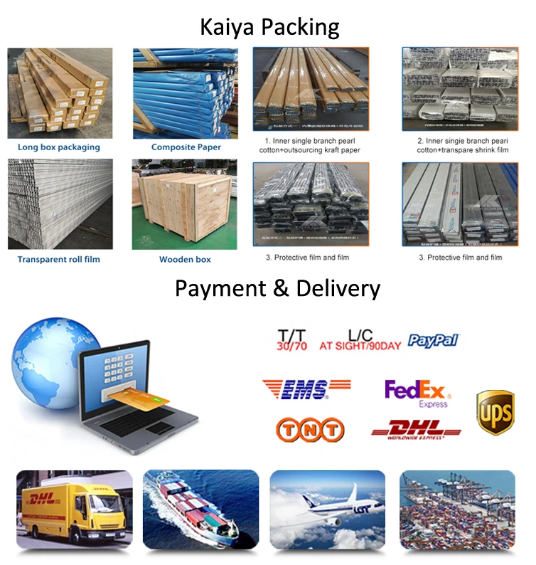 Our Company is a large-scale integrated enterprise specializing in aluminum alloy doors & windows, curtain wall tracks, aluminum profile for decoration and industry. We are professional in mould design, aluminum extrusion and surface treatment processing of anodic oxidation, electrophoresis, powder coating, Fluorocarbon spraying, wooden grain and thermal insulation broken bridge aluminum production. Covering an area of 800,000 square meters of land, after years of development and accumulation, Kaiya has become a quite large scale aluminum manufacturer, possessing casting workshops, extrusion workshops, anodizing workshops, electrophoresis workshops, powder coating workshops, 4D wooden grain workshops, packing workshops and mould workshops and a large and powerful technical team: 28 advanced technicians, more than 50 modern management staff, and over 800 operators. We also have introduced a comprehensive and scientific quality management system, a modern aluminum profiles extrusion production line, advanced inspection machines and inspection methods. The extrusion machines, Silicon machines, ice machines, electrophoresis production line, powder coating production line and wooden grain production line, imported from Taiwan, France, Switzerland, Germany, Japan, Italy, as well as their scientific management mode. By developing the hi-tech talent strategic and the impeccable management system, our company has cultivated a first level service team including production, inspection, sale and logistic team which has provided a quick and convincing guarantee of the product from purchase order, production operation, quality inspection to delivery logistic. We have our own aluminum profiles brand " Kaiyamei" and other brands like" KCM". Our products are popular not only in China but also in Australia, Germany, North America, Africa, and European countries and area. Our products has passed ISO9001 quality management system certification, ISO1400 environmental management system certification, CE certification of EU and CQM certification. Our company has been rewarded of "Guangdong Famous Brand" , " High Quality Manufacturer in China", and "Top 20 Enterprise of Construction Aluminum Industry". Foshan Kaiya Aluminum has been recognized by the industry with our integrity, strength and quality of products. We warmly welcome friends from all over the world come to visit our factory, guide our work and start business with us.