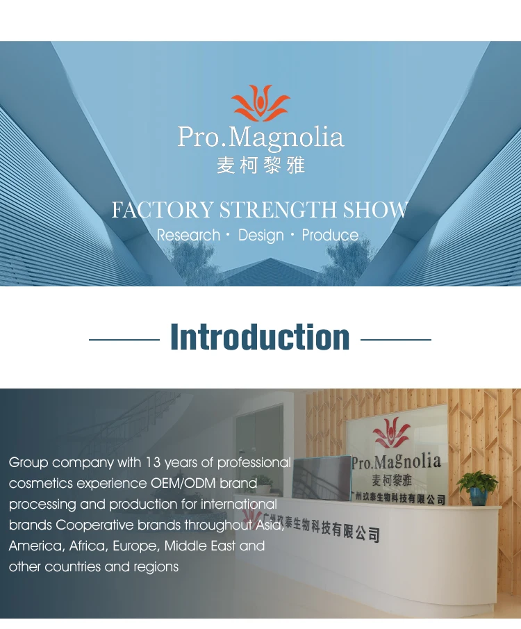 Founded in 2008, with 13 years' experience in OEM and ODM skin care products, Guangzhou Magnolia Cosmetics is a comprehensive enterprise combining development, design, manufacture and sales, owing individual factory and brand.
