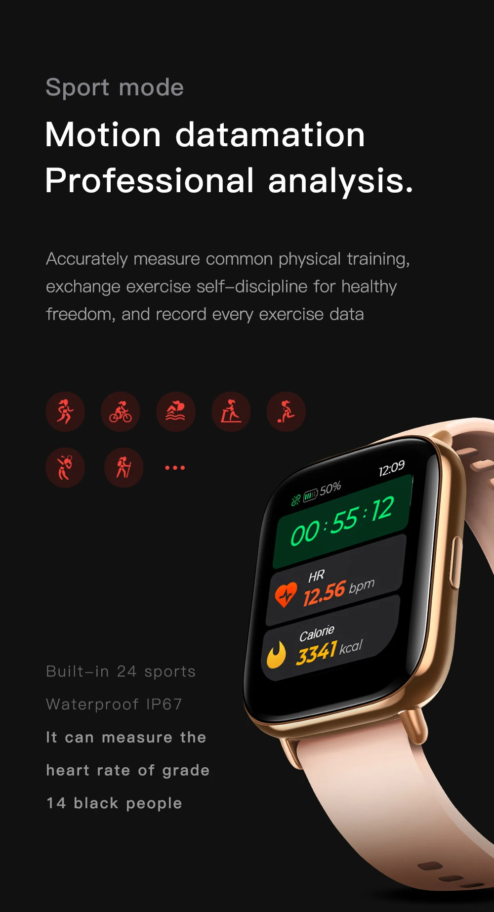 More practical features: call reminder, call rejection, information push, weather display, stopwatch, shake photo, music control bracelet mobile phone two-way search, 24 kinds of movement mode, 4 levels of brightness adjustment, custom dial, waterproof agent IP67, magnetic suction line chargingMore practical features: call reminder, call rejection, information push, weather display, stopwatch, shake photo, music control bracelet mobile phone two-way search, 24 kinds of movement mode, 4 levels of brightness adjustment, custom dial, waterproof agent IP67, magnetic suction line charging