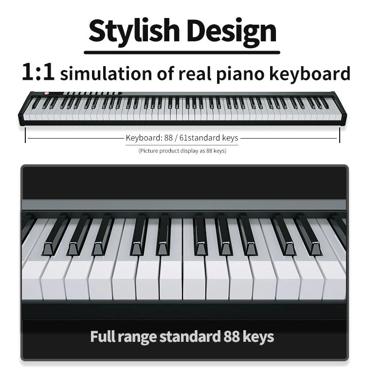 Keyboard | 88/61 standard keys piano |