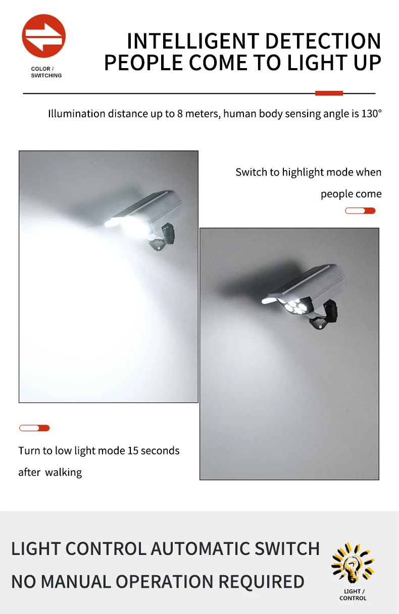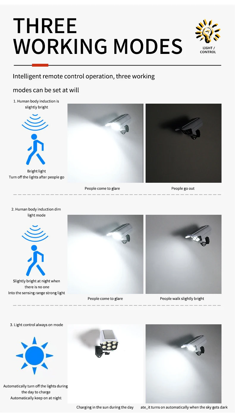 Mode 2:Human body induction+low light mode | |||||||