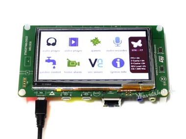 The STM32F7 discovery kit allows users to develop and share applications with the STM32F7 Series microcontollers based on ARM® Cortex®-M7 core.