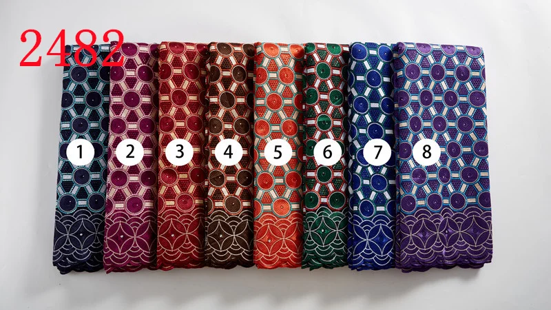 1. Main Fabrics Milk Silk, Guipure Cord Lace, French Lace, Swiss Voile Lace, Swiss Cotton Fabric, Sequins Lace, Velvet Lace Fabric, Embroidered Fabric, Jacquard Fabric, Bazin Riche Fabric, Wax Fabric and Customized Products. 2. MOQ One piece=5yards 3. Advantage 1) Our company is in Guangzhou, China, has opened for ten years with rich experience, competitive price. 2) Most of our fabrics are in stock and shipment is fast, cooperating with many logistics companies. 3) We offer you the low-priced products while ensuring the good quality.4. Discount We will consider a preferential price according to your order quantity and further business cooperation. 5. Shipping Cost Shipping cost is charged by the parcel’s weight and related to logistics you choose and your destination. 6. Delivery Time For ready goods, we will deliver the goods in same day, and about 10-15days, depending on the destination, quantity and the logistics you choose. If you have any questions, please contact us, thanks!
