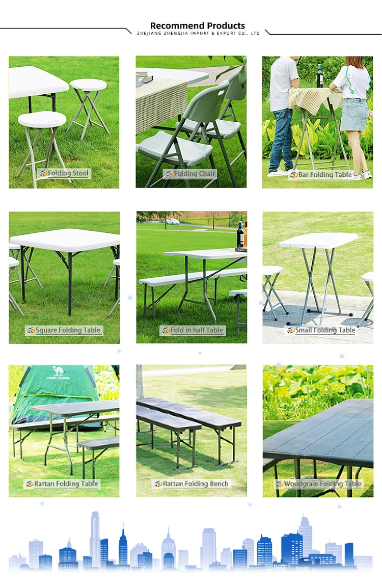 Our company specializes in the production of hollow blow-molded folding tables and chairs. There are folding long tables, round tables, square tables, benches, round stools and back chairs of different specifications and sizes. With a plant area of more than 20,000 square meters and a registered capital of 10 million yuan, it has a complete production chain from blow molding, hardware, spraying, assembly, etc., and has the capacity to produce large quantities of products.