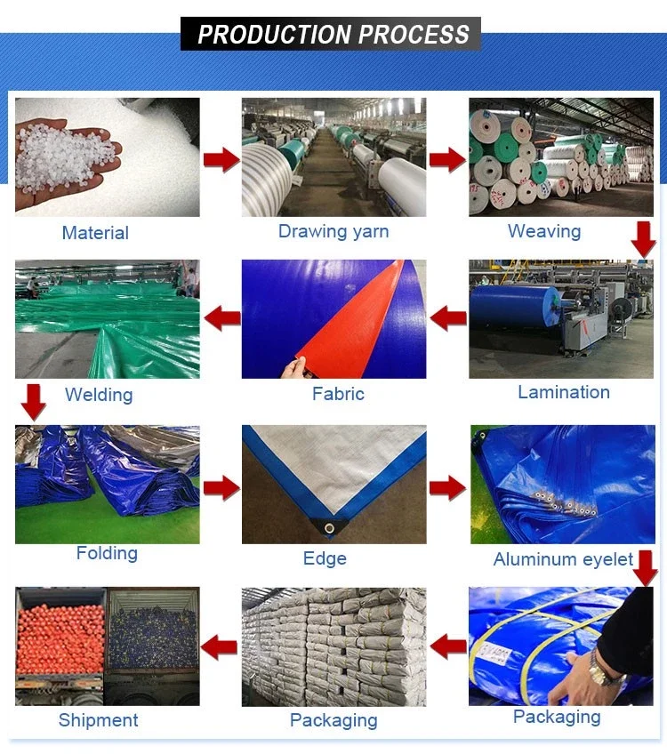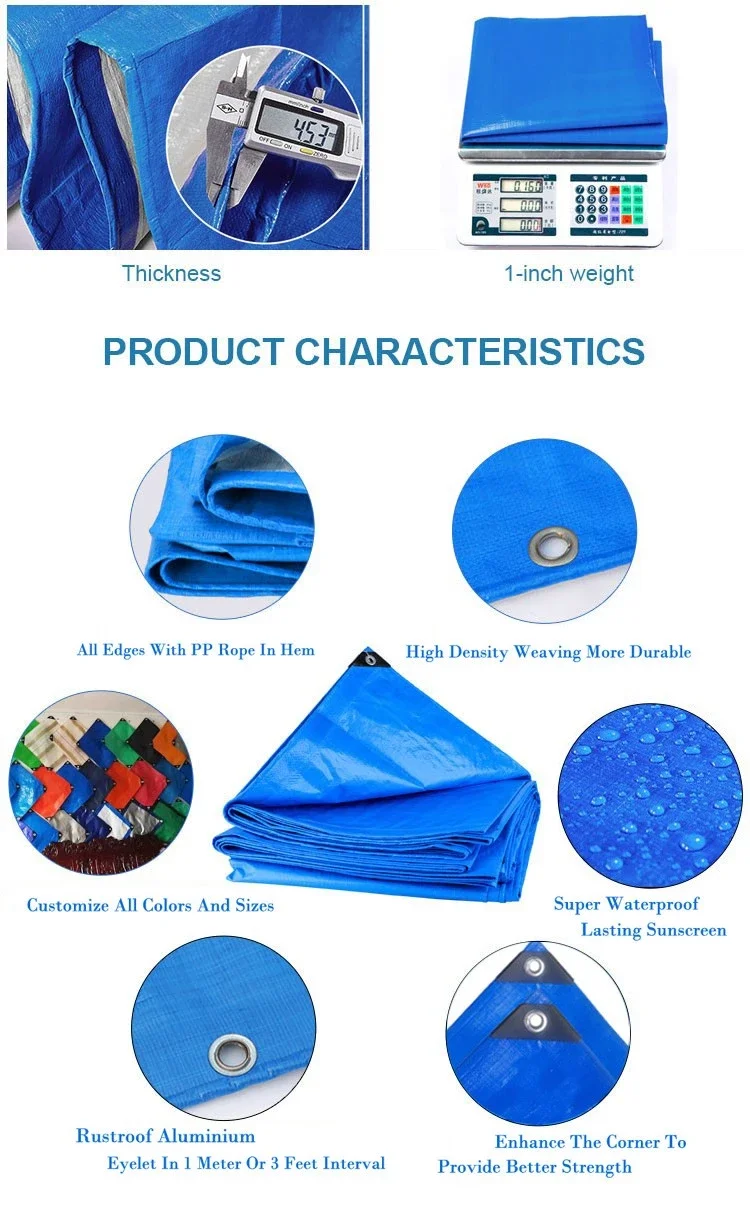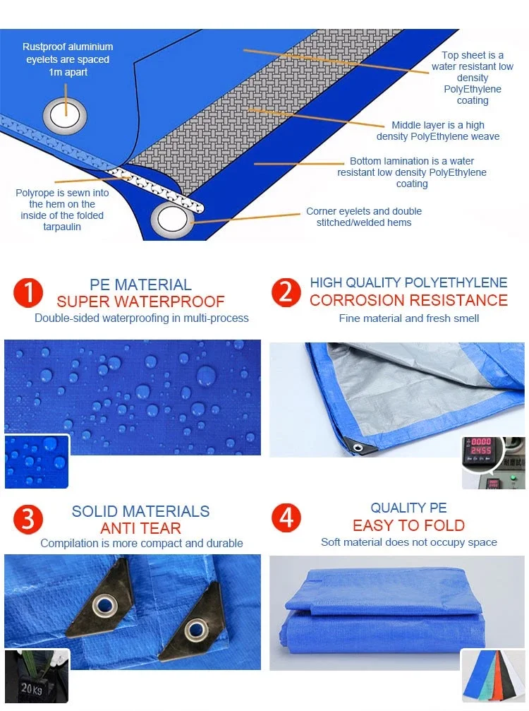 Tarpaulin material: 100% new HDPE material woven and 100% new LDPE laminated on both sides. | ||||