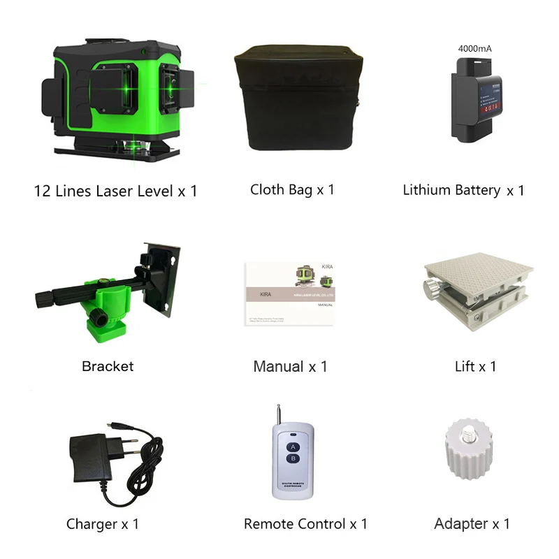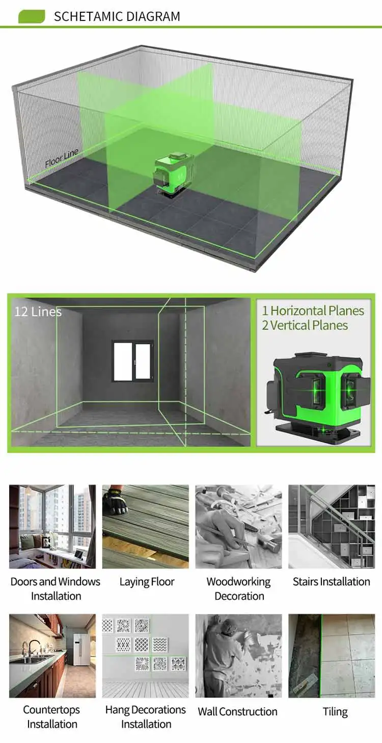 3*360 3D Auto Laser Level Pro 12 lines Green Rotary Outdoor Indoor Laser Land Cross Line Leveling System | ||