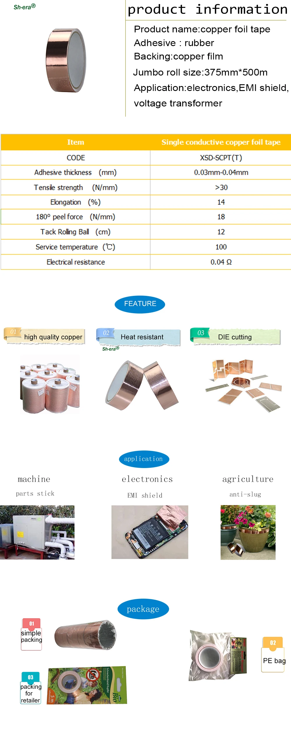 Copper foil adhesive tape for electronic products EMI shielding conductive copper foil tape