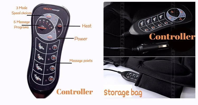 ● 5 vibrating massage motors ● 4 optional massage area : Upper back,Lower Back, Hips, Thighs; ● 5 programmed vibration modes: