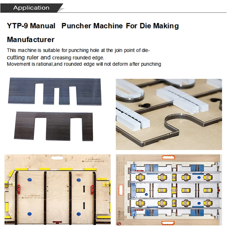 This machine is suitable for punching hole at the join point of die- cutting ruler and creasing rounded edge. Movement is rational,and rounded edge will not deform after punching
