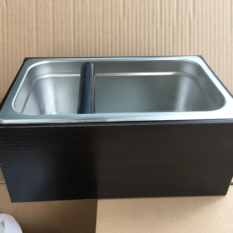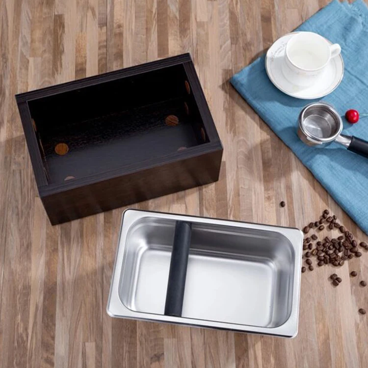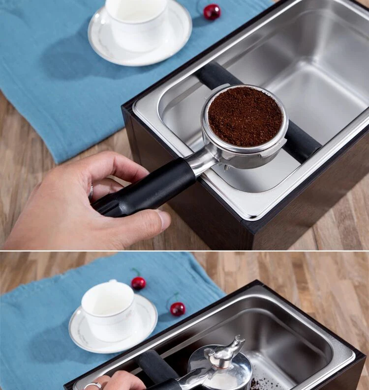 Custom Logo Barista Espresso Coffee Grind Powder Bucket Wood Stanliess Steel Knock Box