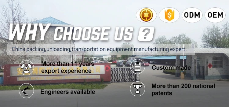 Anqiu boyang machinery manufacturing Co is a professional manufacturing of machine of packaging,conveying,logistics and warehousing for powders,graniles,pastes,and other materials.we have passed ISO9001 quality management system certification.