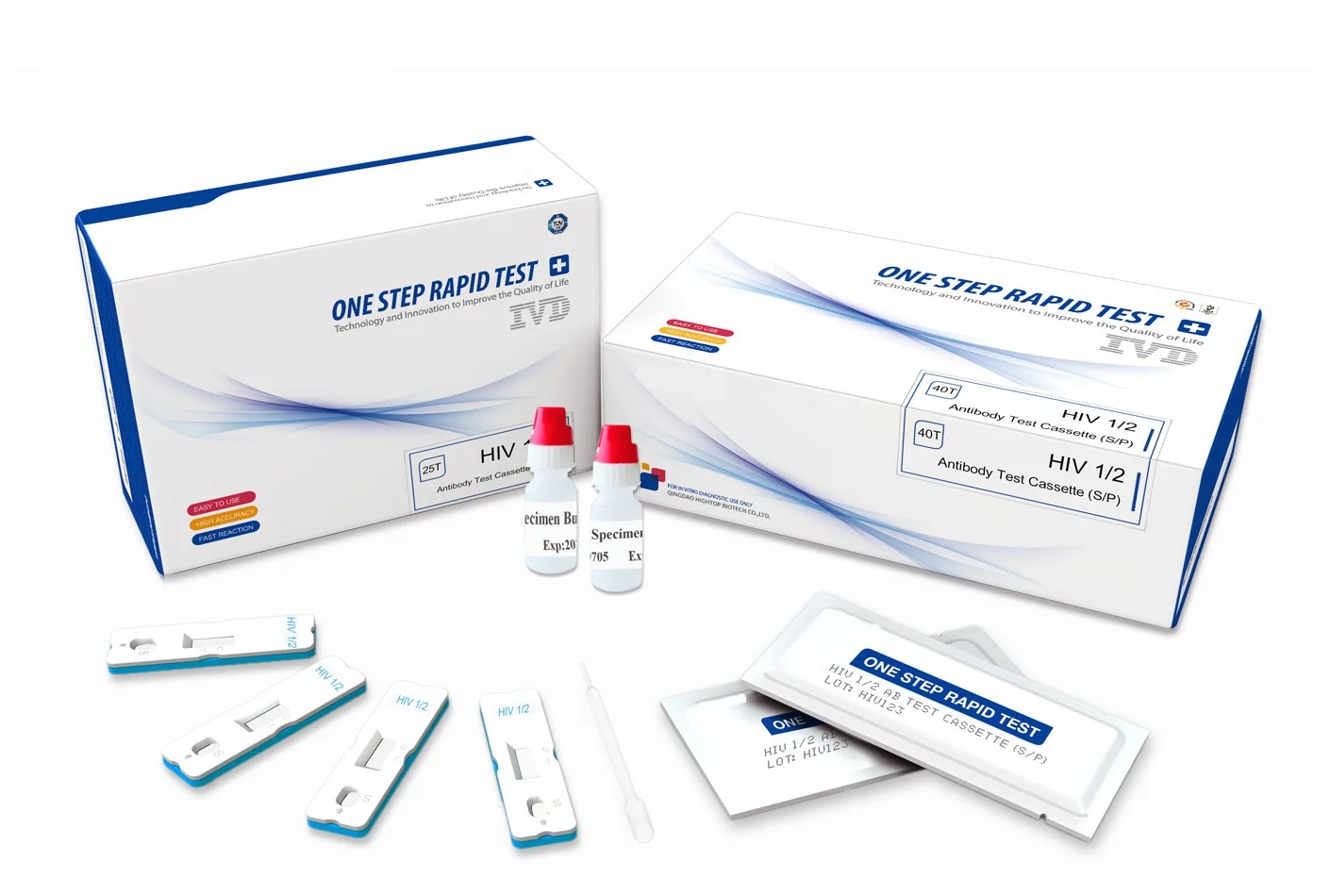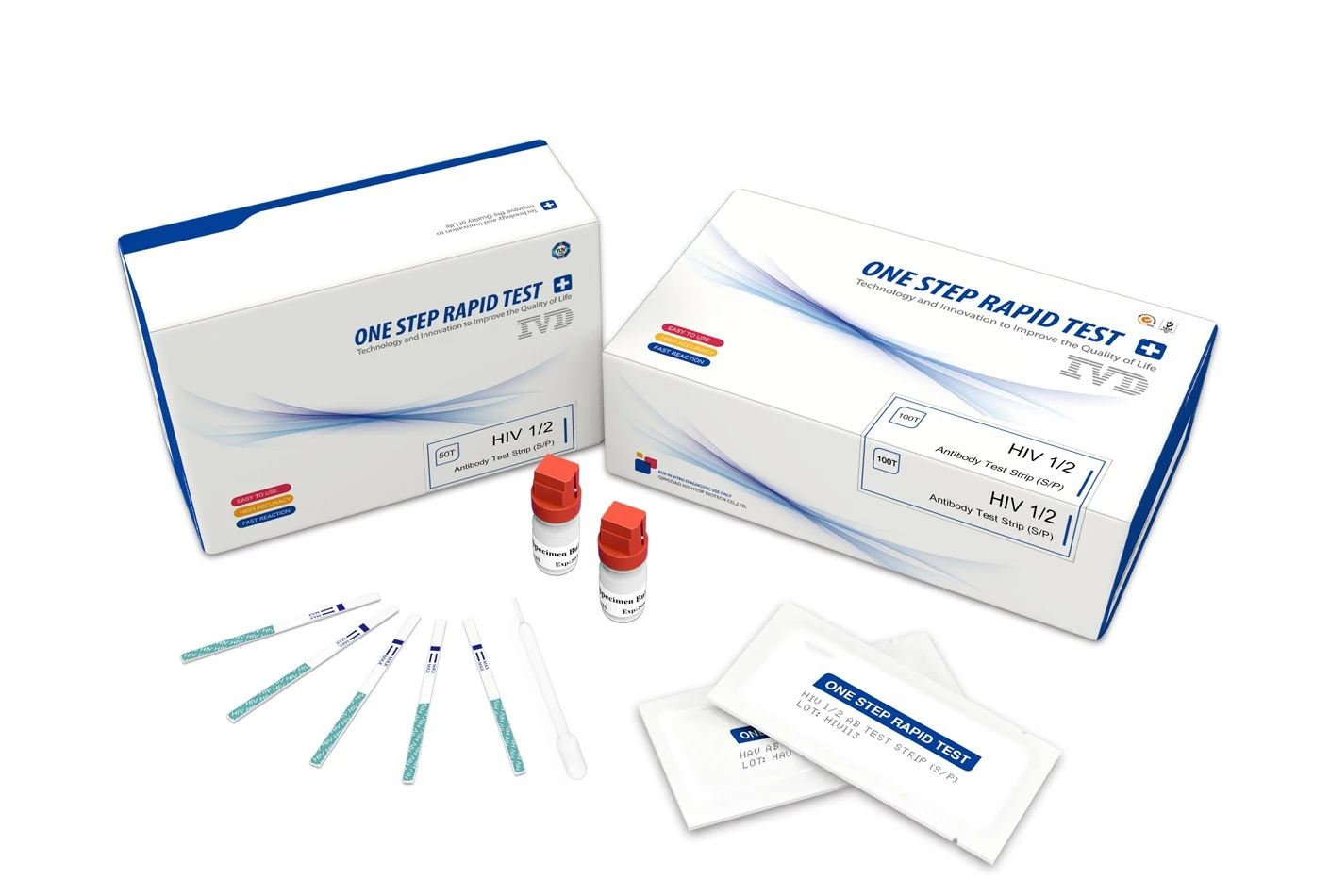 The one step HIV(1+2) test is a rapid test based on the principle of immunoassay combined with conjugated colloid