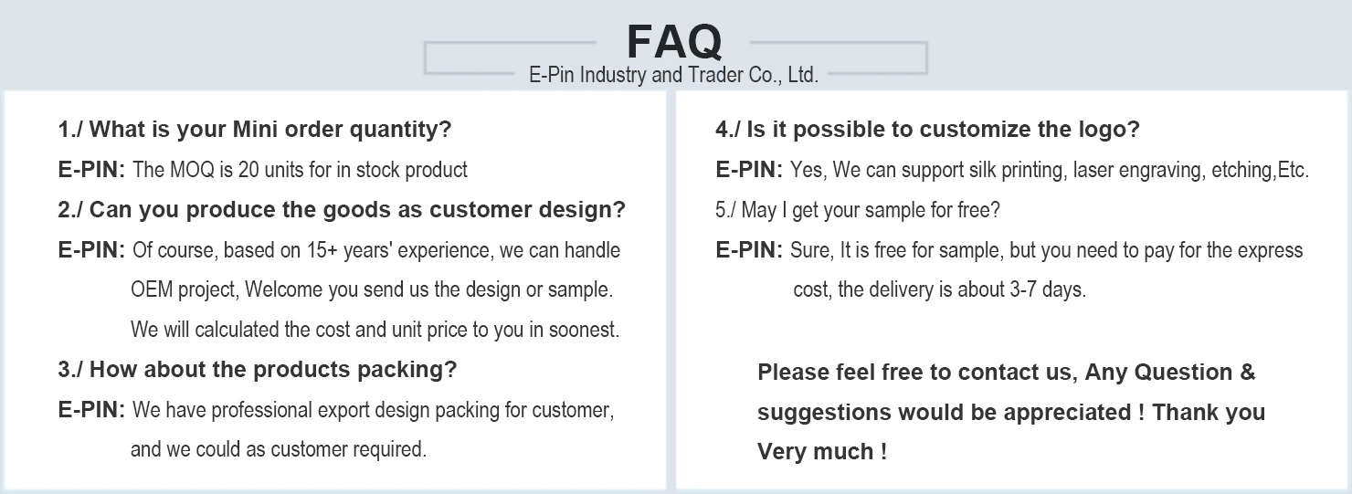 Logo marking: | Customized logo with printing/etching/laser |