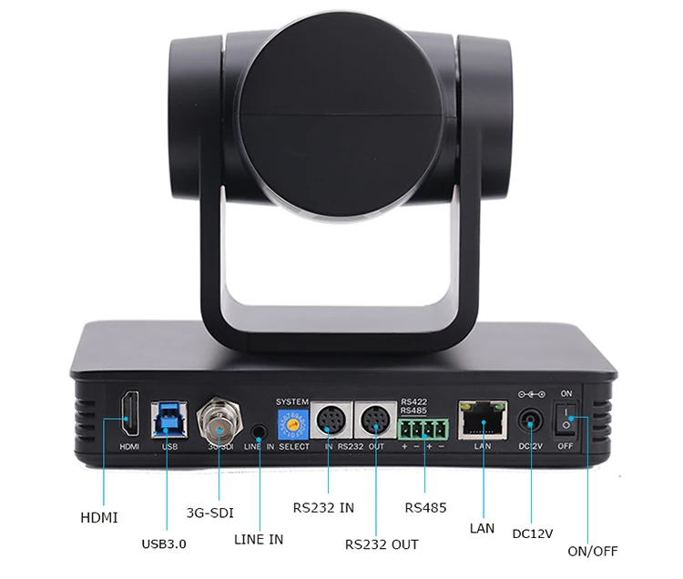 Video Output | HDMI, SDI, LAN(POE), RS232-IN/OUT, RS422 & RS485, A-IN, USB3.0(type B compatible with USB2.0), DC12V, power switch | ||