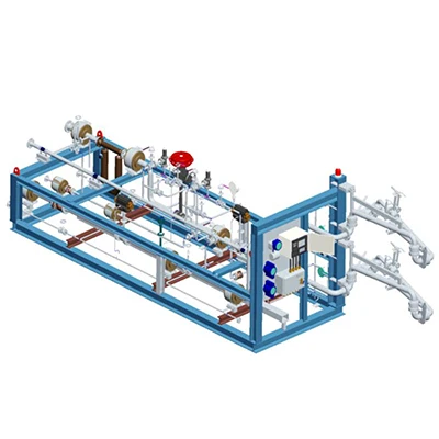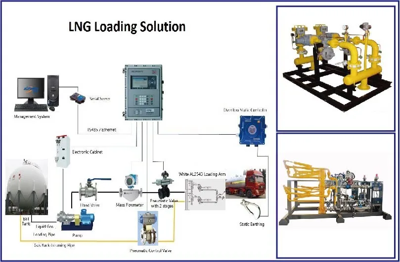 Due to the complexity of the process, LNG loading has more automatic control instruments in its armor. It consist of loading arm with recovery pipe, flow meters, static grounding protector, pressure transmitters, Flow control valve, emergency shut-off valve, related piping and batch controller.