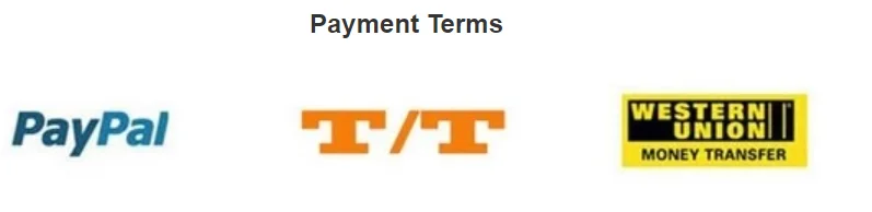 Payment Terms | Alibaba trade assurance,Paypal,Western union,moneygram and T/T |