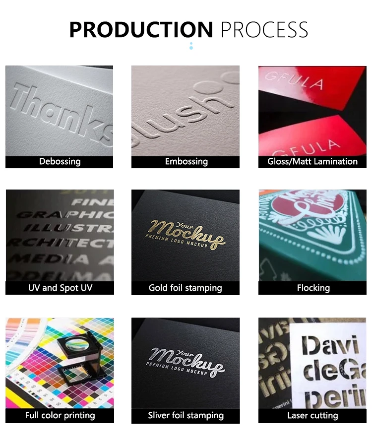 Surface Disposal | Support for custom Matt/Glossy Lamination, Embossed/Debossed, Spot UV, Gold/Silver Foil, Hot-Stamping etc. | ||||||