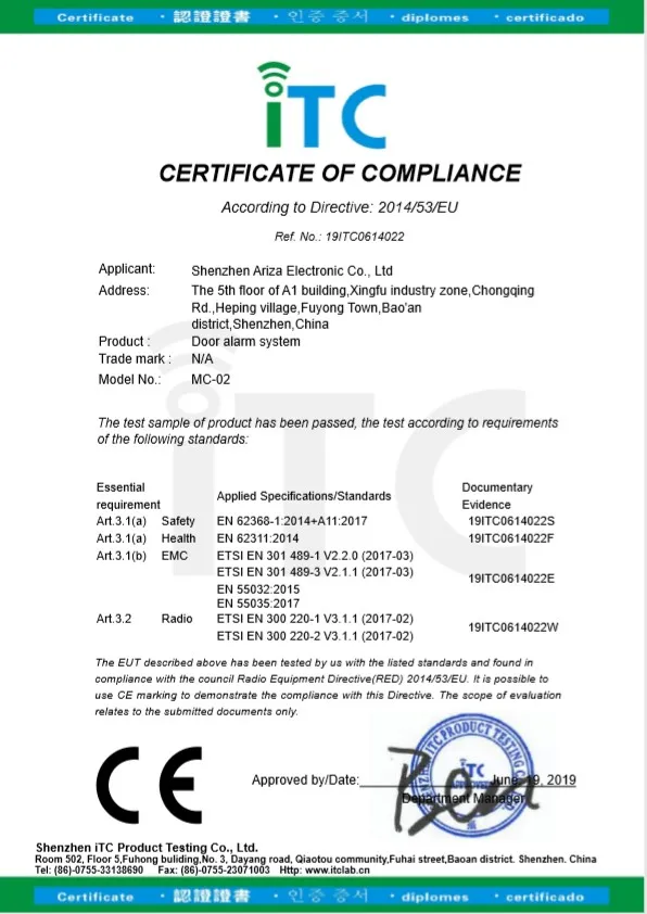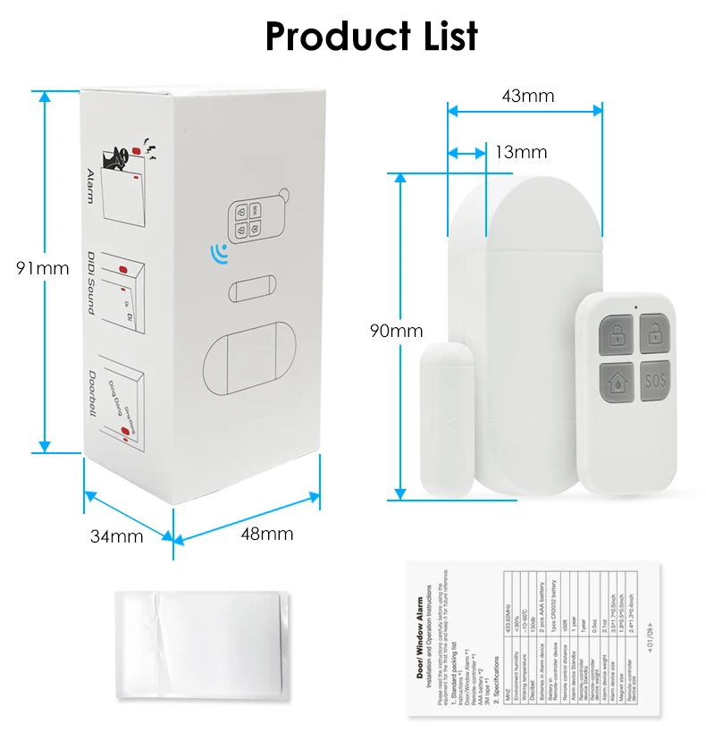 Alarm device size | 90*43*13mm |