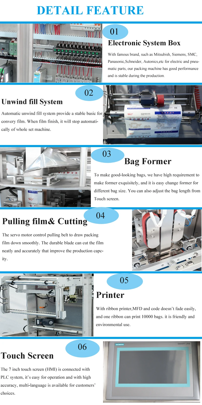 Packing speed | 0-70 bags / min | 0-60 bags / min | 0-45 bags / min | 0- 30 bags / min |