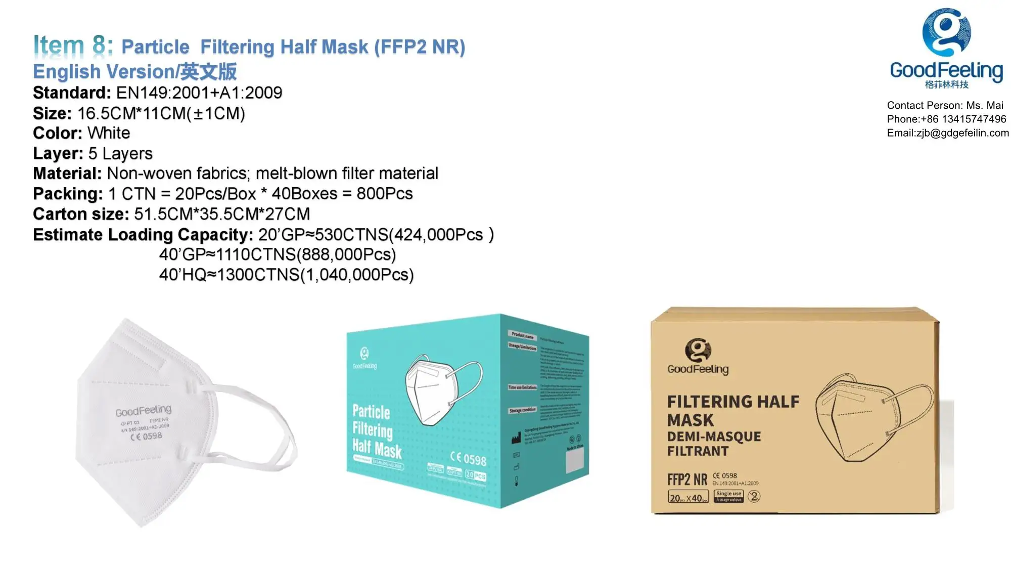 Item | Kn95; Particle Filtering Half Mask (FFP2 NR) |