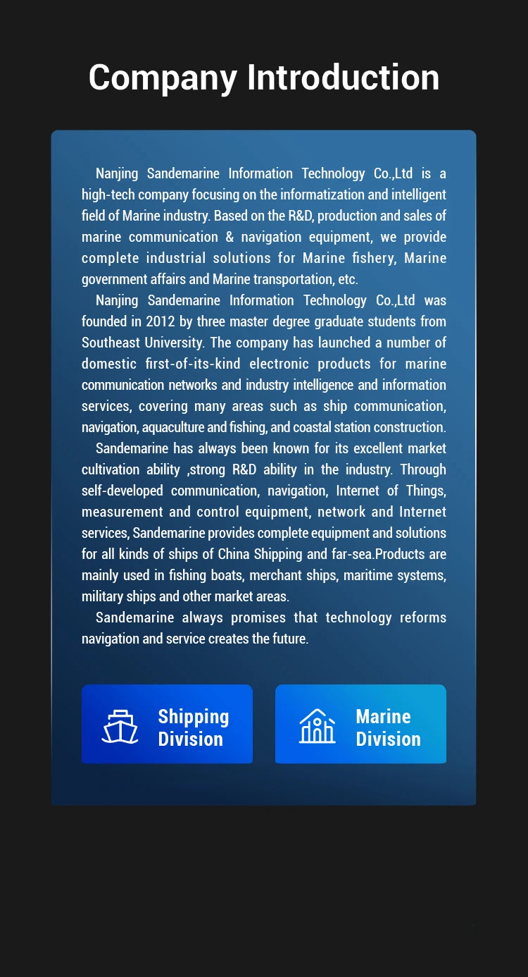 4. why should you buy from us not from other suppliers? 1.Professional R&D team in marine communication/navigation equipment ; 2.Multicultural cooperation mode,like ODM,OEM 3.Friendly customer experience. 4.Perfect and powerful after-sales system. 5.High performance-price ratio