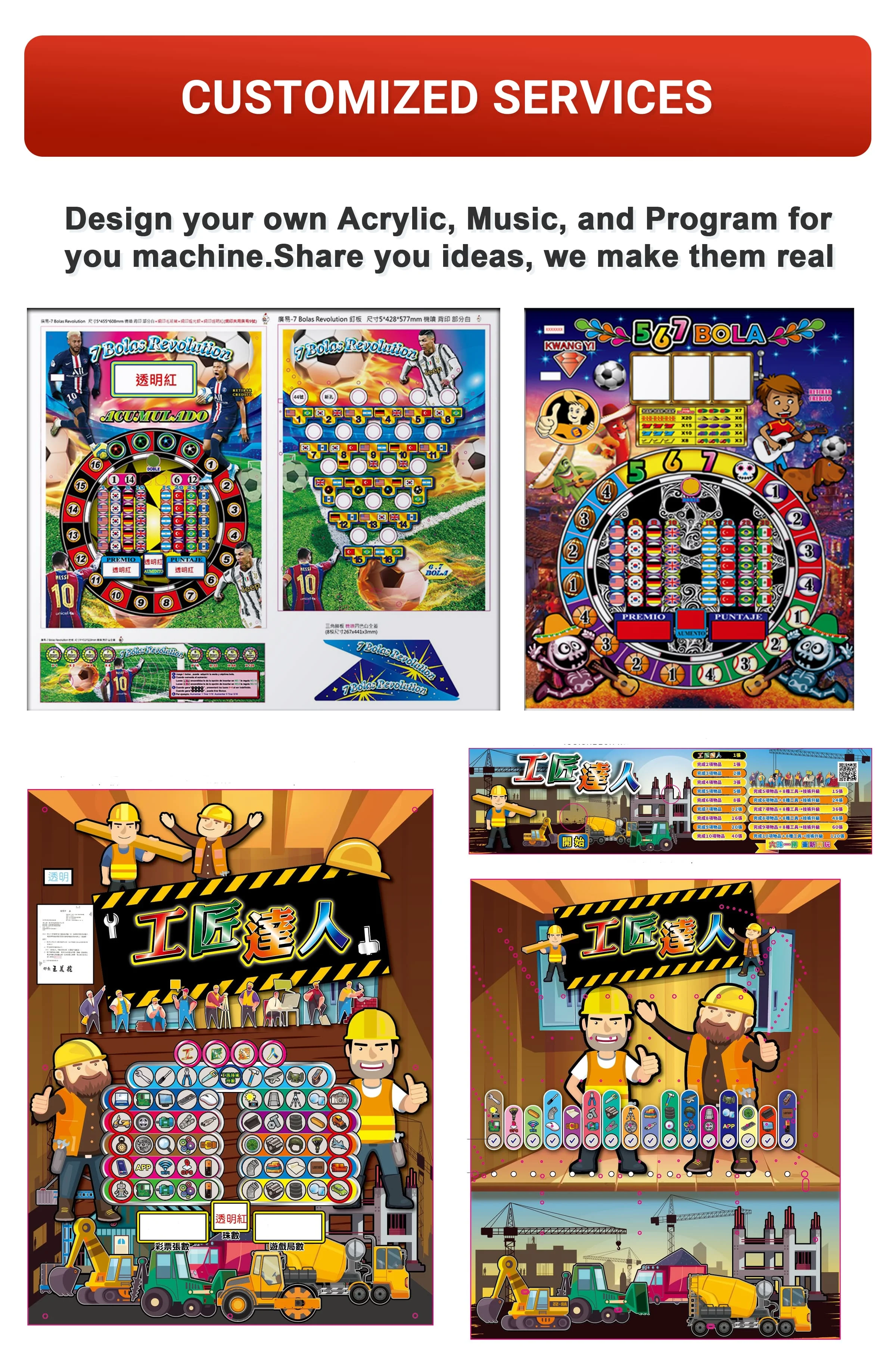 Q5: Can you customized the machine? A5: Yes! Besides offer the exclusive music and acrylic, we also provide different programs options.