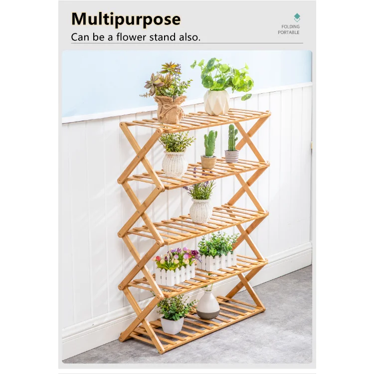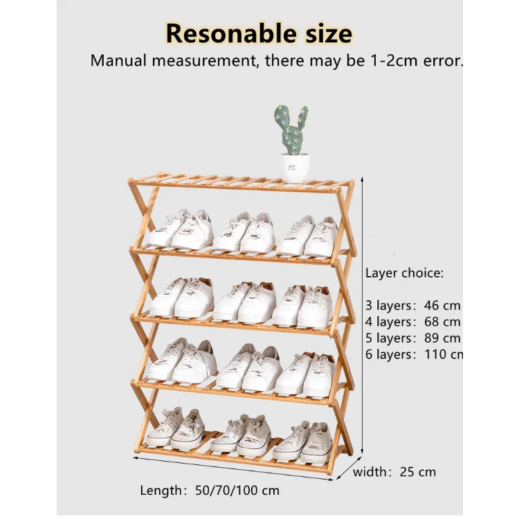 Bamboo Folding Multi Functional Household 4 Layer 2 Tier Simple Cabinet Door Economical Foldable Wooden Shoe Rack