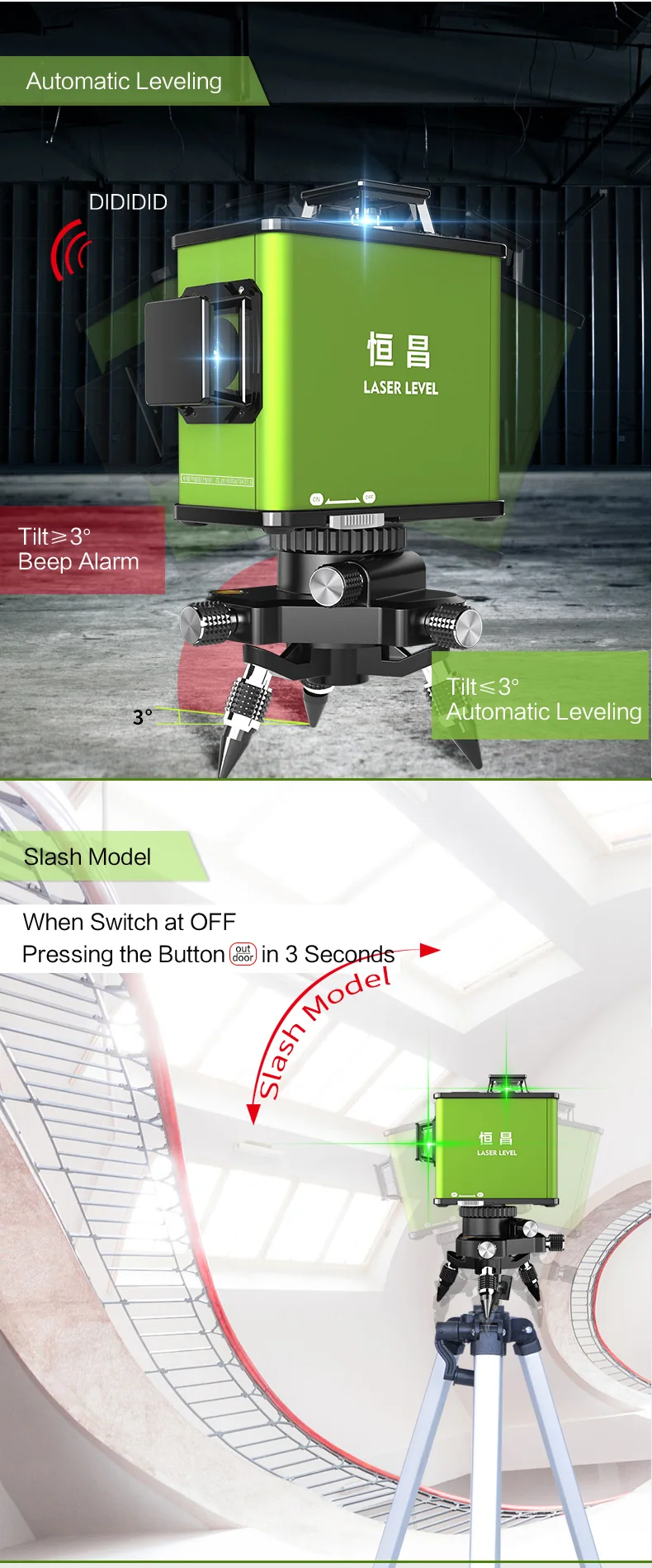3*360 Green Beam Ceiling Laser Level 3D 12 Lines Self Leveling Horizontal Vertical Cross Line Leveling Instrument | ||