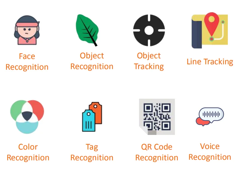 Function | Play audio; Feature learning; Vision line-tracking; Human face tracking; Face/ Color block/ Tag/ Object recognition; Self-learning voice recognition; |