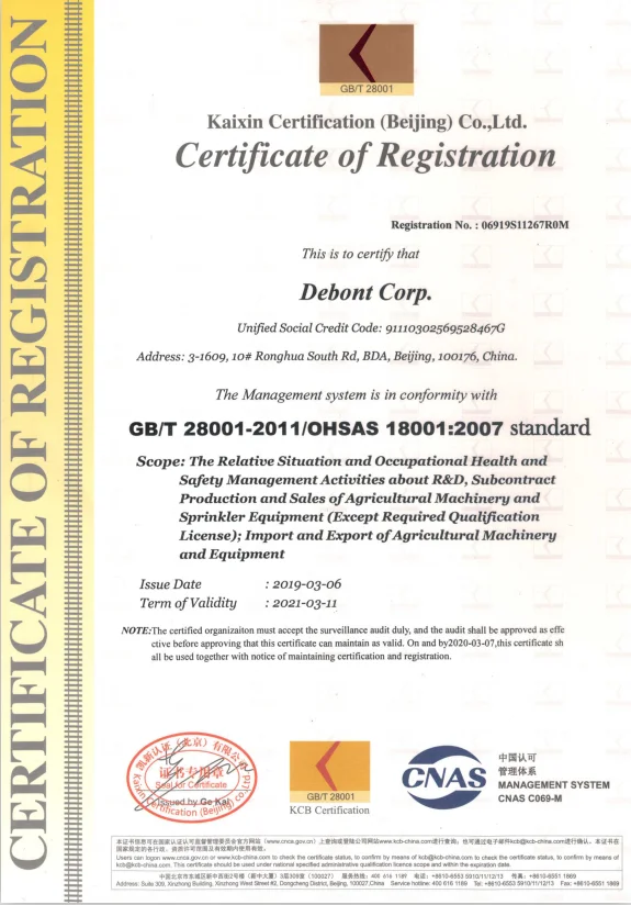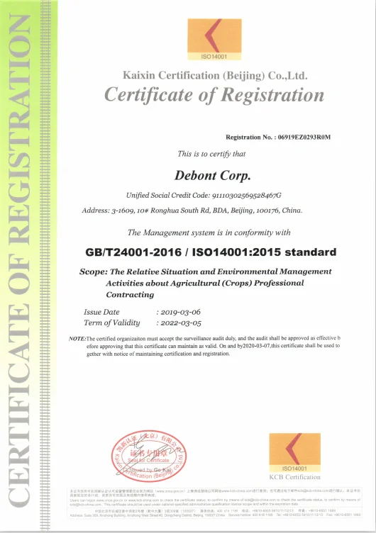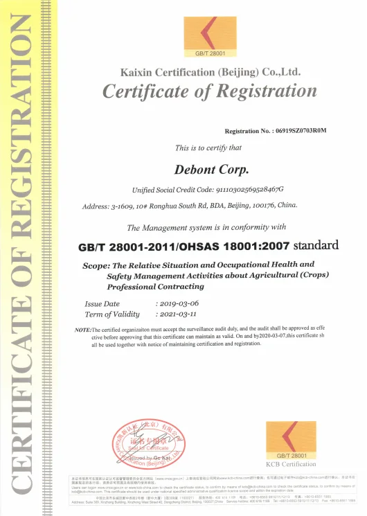Debont Corp. is a system integrator specializing in modern agricultural production processes, the major operations include providing integrated solutions in agricultural engineering, supplying agricultural equipment, contracting of agricultural projects, and agricultural project operation.Debont Corp. is National High-tech Enterprise and is awarded ISO9001 Quality management System Certificate. The headquarters are located in BDA (Beijing Economic-Technological Development Area). including agricultural machinery, irrigation equipment,
