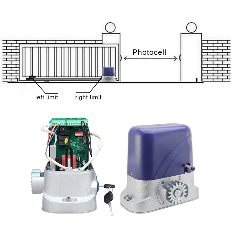 Our sliding gate opener has many features such as: low noise, light weight, powerful starting torque, stability, reliability and is compact and stylish. The motor will still work for a short period of time using lower voltage. The control board has overload protection.When there is a power failure, the motor drive can be separated by the use of the clutch, by using the specified key the user has the ability to disconnect the clutch enabling the gate to be opened or closed manually. Using the optional infrared photocells the gate will automatically stop and re-open if an obstacle is sensed.