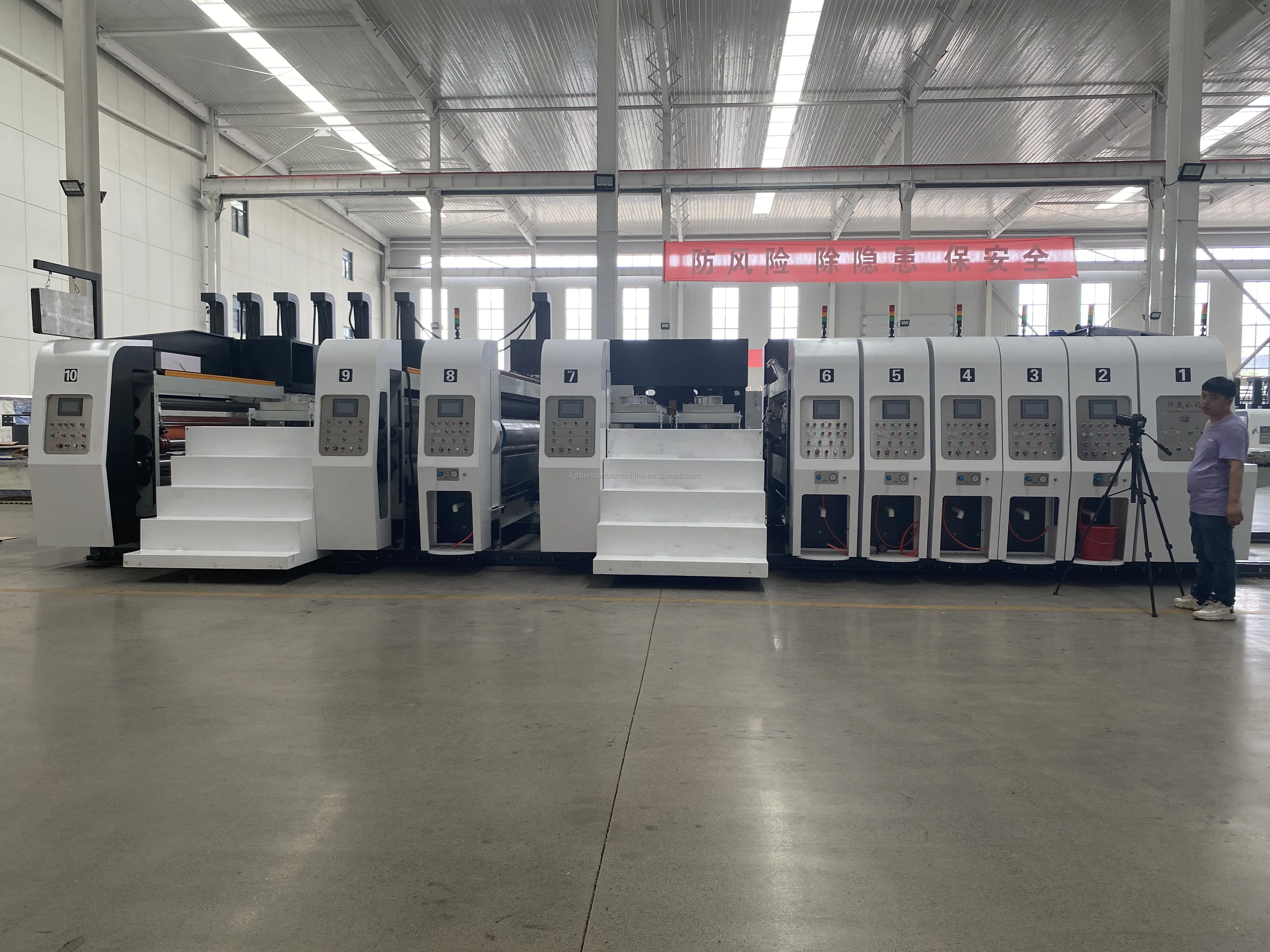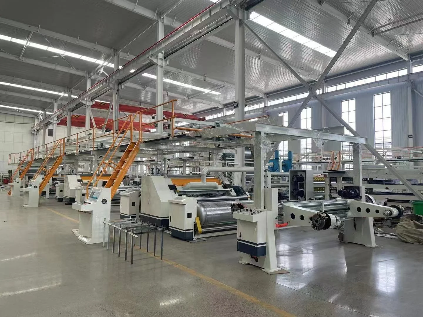 Features | Corrugated cardboard production line is the professional advanced equipment for produce 3ply, 5ply, 7ply corrugated cardboard. The production line consists of mill rolls tand, liner(medium paper) pre-heater, single facer machine, conveyor bridge, gluing machine, double baker, slitter scorer machine, NC cut-off, conveyor and stacker, heating system. Air compression system, glue making system etc. | |