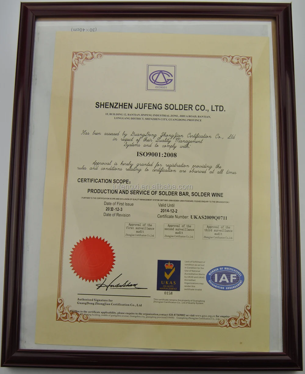 6. Cetification: