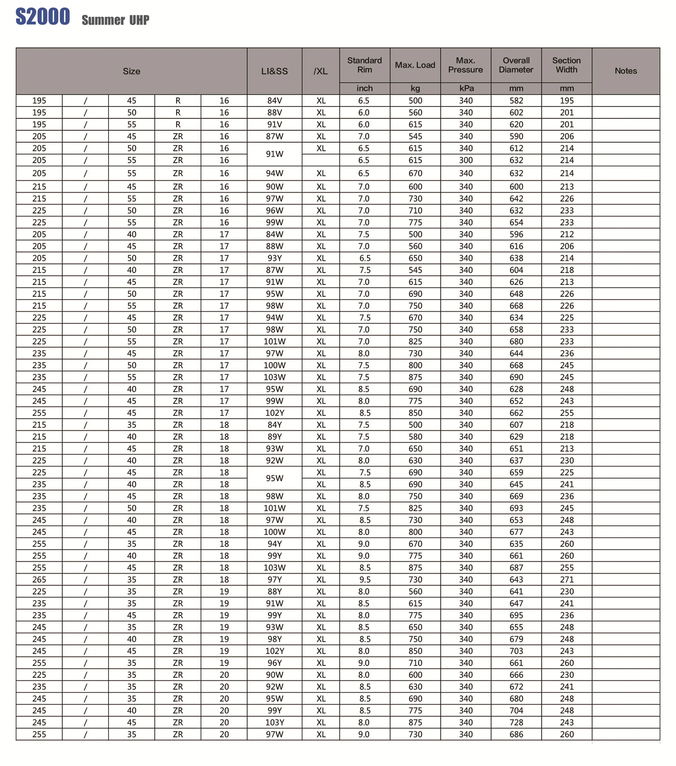 Tyre Type 2 | 255/45ZR18 265/35ZR18 245/45ZR19 245/40ZR20 |