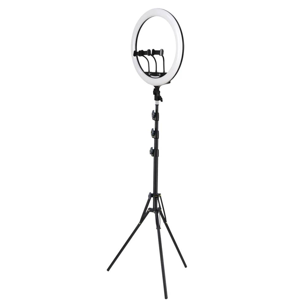 【360°Rotation & Adjustable Tripod】The top part of the stand is a 1/4" universal thread, which can be used together with the ring light and smart-phone holders. The light stand can be extendable to desired length for your preferred use. The circle ring light is360 degrees ratationalbe to adapt different angles needed. The tripod stand is compact and lightweight, easy to carry and store.