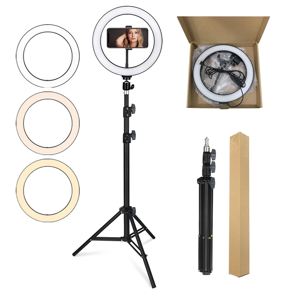 【Wide Applications】The circle light provides one shadow-free and uniform lighting to give you the perfect skin and charming eyes effect. A professional tool for all mobile app,video, makeup, beauty salon, real-time internet radio, video chat, live streaming, product display, etc. Perfect for traveling.