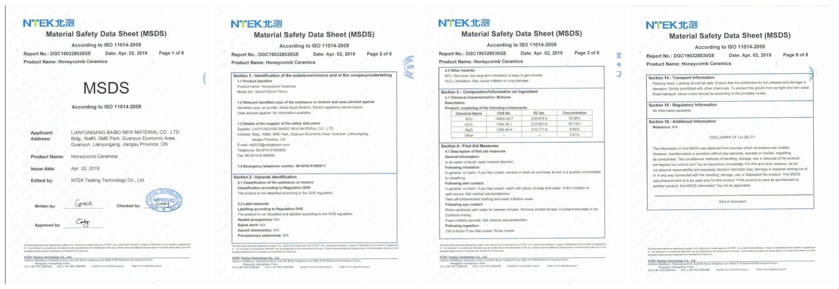 Softening Point | 1630℃ |