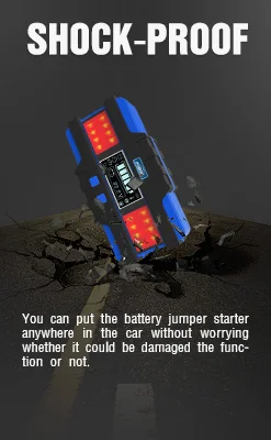 Advanced Design ➤ Portable and lightweight (<2.5lb) with a rugged and water-resistant enclosure rated at IP65. A rubberized over-molded casing prevents scratching, or marring of surfaces. The built-in LED flashlight with steady light, strobe, SOS modes can illuminate your engine bay at night, can remind the emergency situation in an accident.