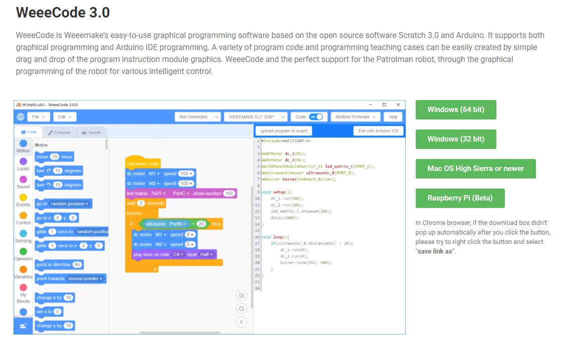 Software | WeeeCode (Scratch 3.0, microPython) |