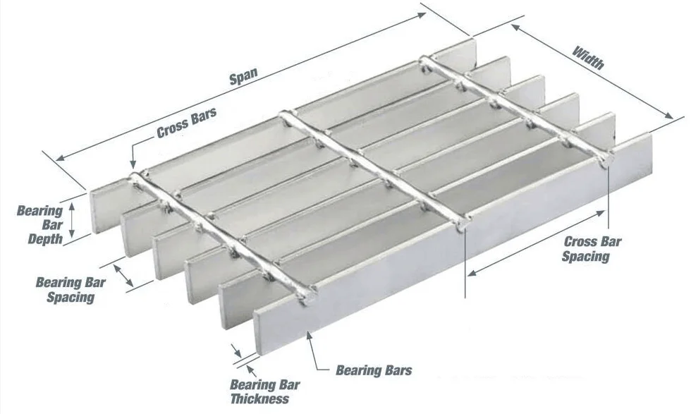 2) Bearing Bar Pitch (center to center): 12.5, 15, 25, 30, 30.16, 32.5, 34, 40, 41.25, 45, 50, 60, 60.32, 80, 100 mm etc, also be according to client's requirement and 30, 40, 60mm are recommended, America standard 1"x3/16", 1 1/4"x3/16", 1 1/2"x3/16"; 1"x 1/4", 1 1/4"x 1/4", 1 1/2"x 1/4" is available.