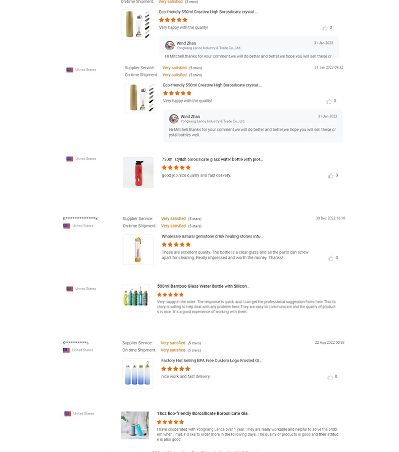Advantage: | * REUSABLE AND REFILLABLE borosilicate glass drinking bottle; saves plastic waste and is free of BPA, PVC, Lead, and Cadmium for safe and pure water * STRONG AND LIGHTWEIGHT, durable glass won’t crack under extreme temperatures; glass and silicone are diswasher safe, natural eco-friendly product * COLOUR SILICONE SLEEVE adds style and provides protection from slips and falls; choose from a variety of colors *WOODEN LID with BPA free silicone part insert, food-grade silicone o-ring; perfect mouth size for spill-free drinking | ||||||