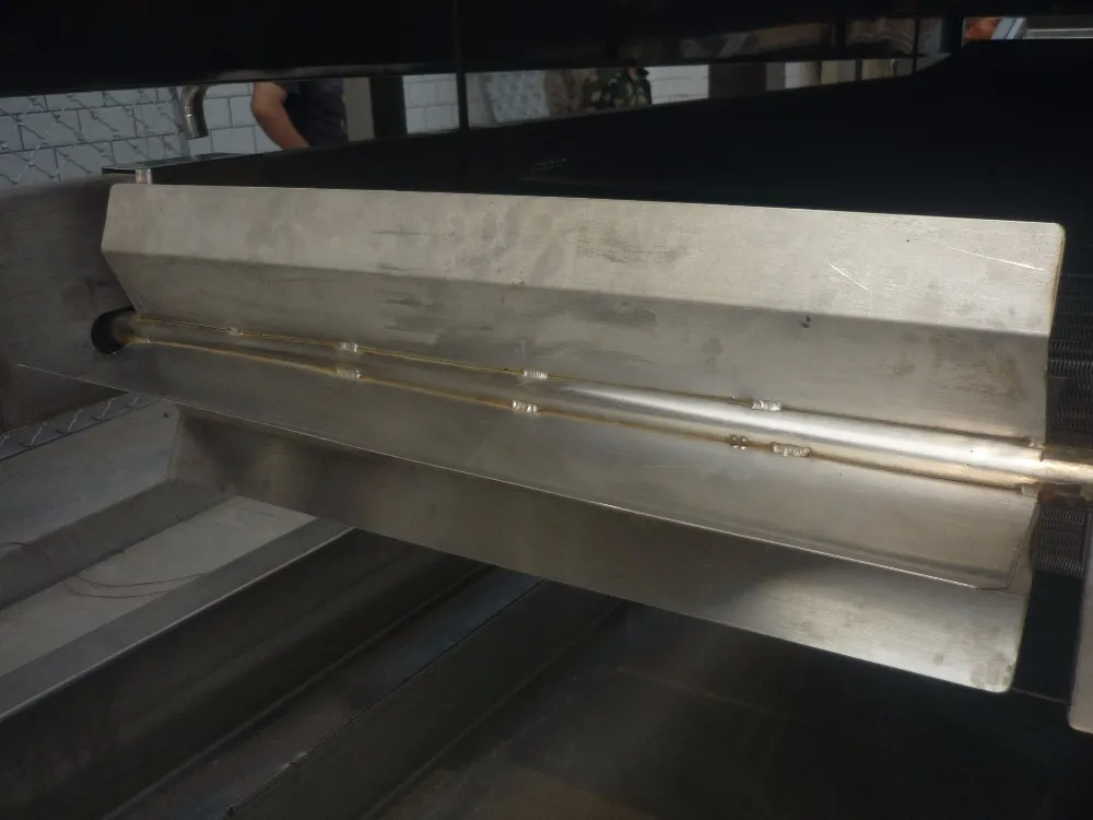 This machine is used for spray sugar or other liquid flavor on chips after frying. the spray device is automatic and there has liquid storage tank has insulation device