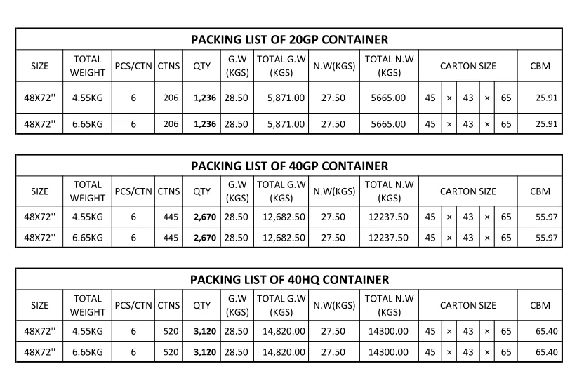 Size | 30*40" 36*48" 41*56" 41*60" 42*78'' 48*78" 60*80" or Customized Size (Please Check the Detailed Pages for More Information) |