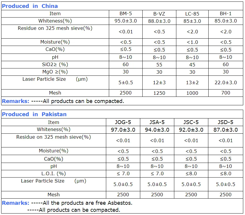 -Talc powder has high specific surface, talc works also as dusting/partitioning agent for sticky compounds, improving handling and preventing agglomeration.