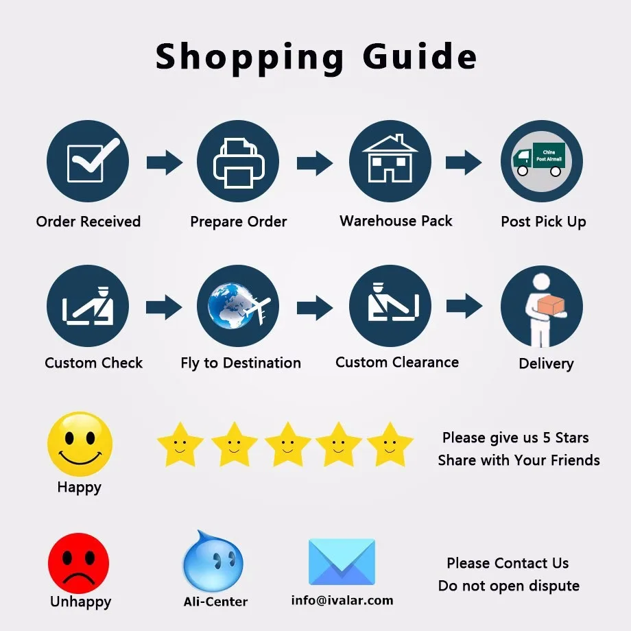 Dear buyers, we appreciate your order, if you are satisfied with our service, please leave us a positive feedback and rate the details of the transaction (Detailed Seller Ratings) with a "PERFECT 5 STARS". Your recognition will make us more confident to develop business and serve you better. Our goal is to make sure you are a happy buyer, and pleasant shopping with us.