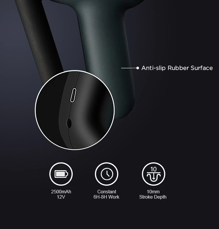 Constant power and constant speed function.Right now,only our factory can produce this function massage gun. this made the massage gun keep same speed whether it is used at maximum speed or idling.but the output power of the machine increases as the massage force increases, and decreases when it decreases,this can reduce power lose.The battery can keep running for 6-8 hours.