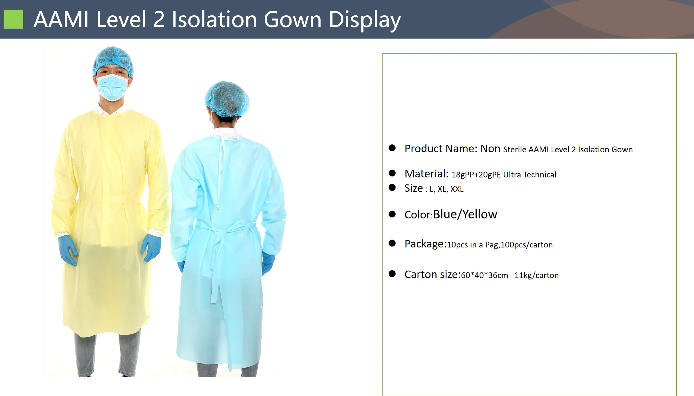 Product | Medical ASTM Level 2 isolation Gown | |||||||